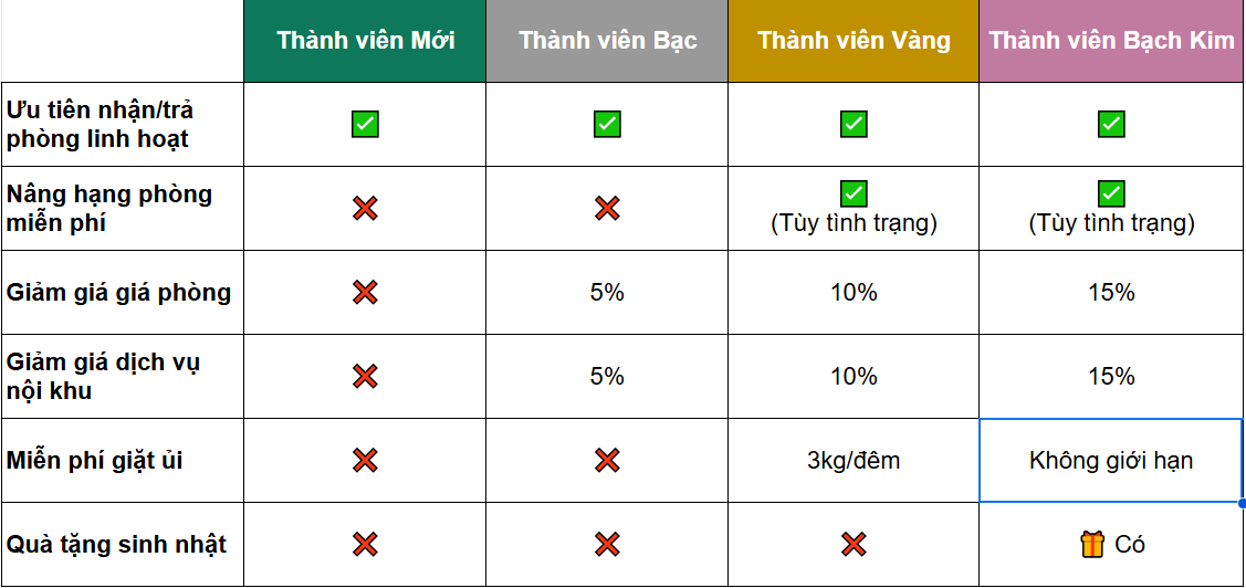 Thành viên Bạch Kim (Platinum): Tích lũy 50.000 điểm (tương đương chi tiêu 50.000.000 VND).